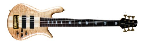 Original Spector NS curved body shape. USA 3 pc maple neck-thru body with graphite reinforcement, 24 fret rosewood fingerboard with Spector mother of pearl inlays. Gold hardware, including Spector locking bridge, Schaller tuners, and Schaller Straplocks, brass nut. Figured maple top, a slice of walnut, alder back body. Natural Oil finish. EMG 45DC active pickups with powerful Spector TonePump boost only active tone controls.
