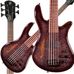 Special SpectorCore body shape. Semi-Hollow body with F hole. Acoustically designed tone chambers. 3 pc bolt-on maple neck, 24 fret rosewood fingerboard. Black hardware, including Fishman piezo Bass Powerbridge. Fishman PowerChip EQ system. Genuine figured maple top, basswood body. High gloss finish. One Spector SSD passive humbucker with passive tone controls.